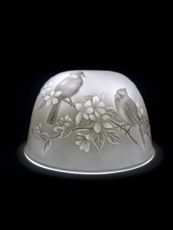 Светильник-ночник из тонкого фарфора имитирует старинный декоративный подсвечник. Пока ночник не горит, он выглядит как вазочка с изящным рельефом, но стоит только включить свет внутри, стенки разной толщины создадут чарующий рисунок, наполняя комнату мягким освещением.