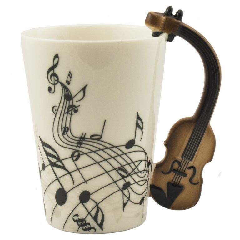 Изящная керамическая кружка с символическим орнаментом и ручкой в виде музыкального инструмента, покрытой оригинальной ручной росписью упакована в красивую подарочную коробку.