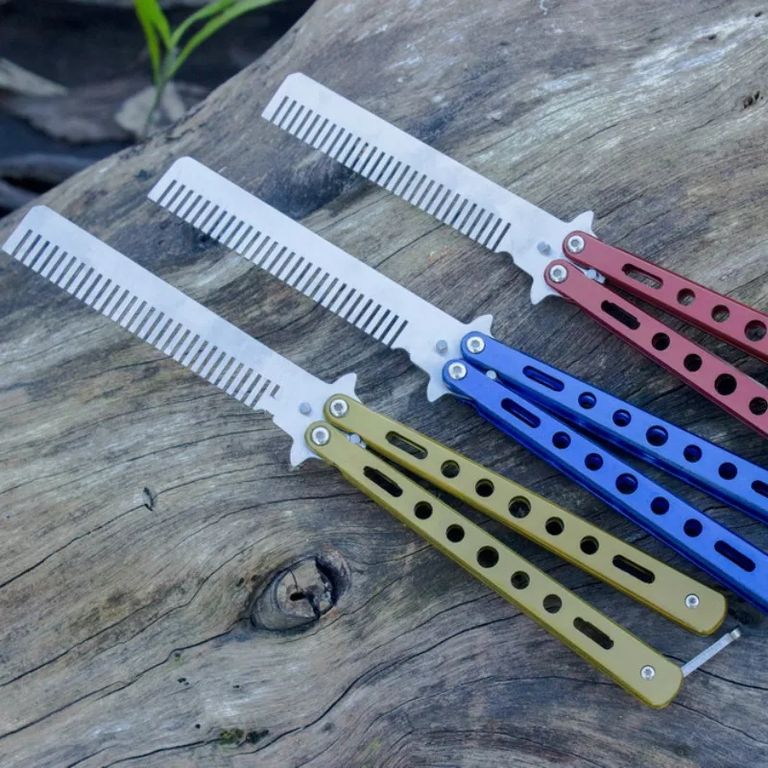 Оригинальная расческа имеет механизм - такой же, как на знаменитых ножах «бабочках». Такую расческу удобно носить с собой в сумке или кармане. Благодаря небольшому размеру она всегда будет под рукой, а складной механизм защитит расческу от повреждений.