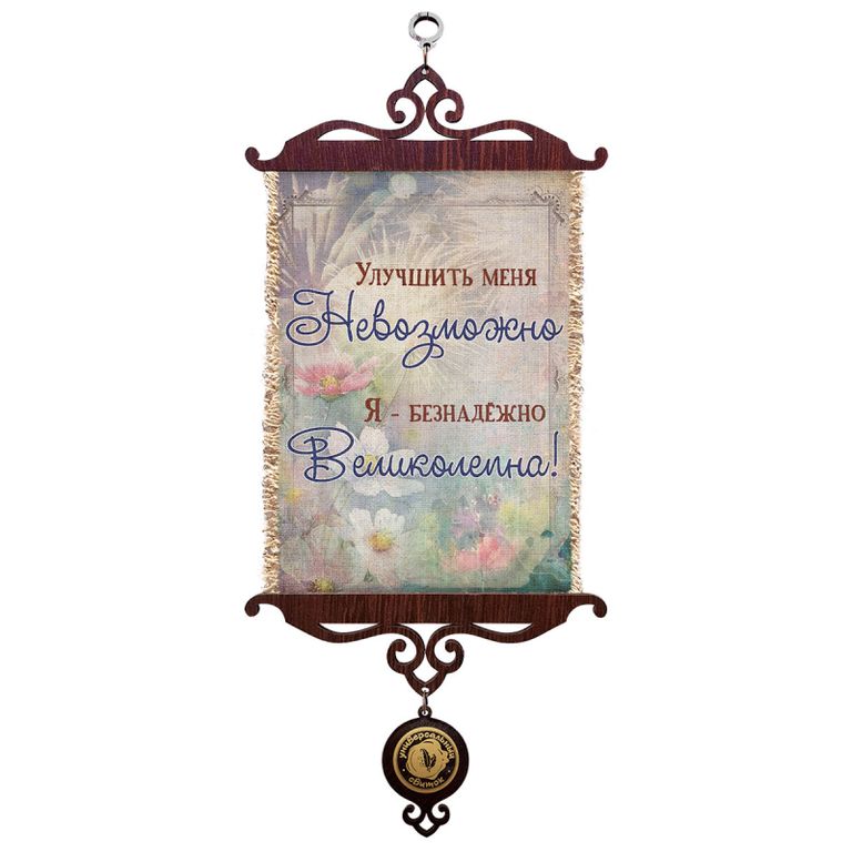 Сувенир вертикальный - это синтез креатива, оригинальности, практичности и доступности. Специальная технология нанесения на льняную ткань и бахрома по краям превращают изображение в фактурный свиток, а обожжённая деревянная рея в сочетании с тесьмой из плотной мешковины и джутовым шпагатом, преобразуют свиток в оригинальное панно. Он защищен специальным лаком от внешней среды. Долговечен, как и положено изделию под старину, но при этом его стиль не подвластен времени. Это модная новинка, которая одинаково прекрасно вписывается в интерьер загородного дома, дачного домика, бани, квартиры или офиса. Его актуальность сложно переоценить. Его мудрые цитаты, афоризмы, пожелания или шуточные высказывания ненавязчиво дополняют собой пространство, положительно влияя на его атмосферу и имидж своего обладателя. Прекрасный подарок по любому поводу и без.