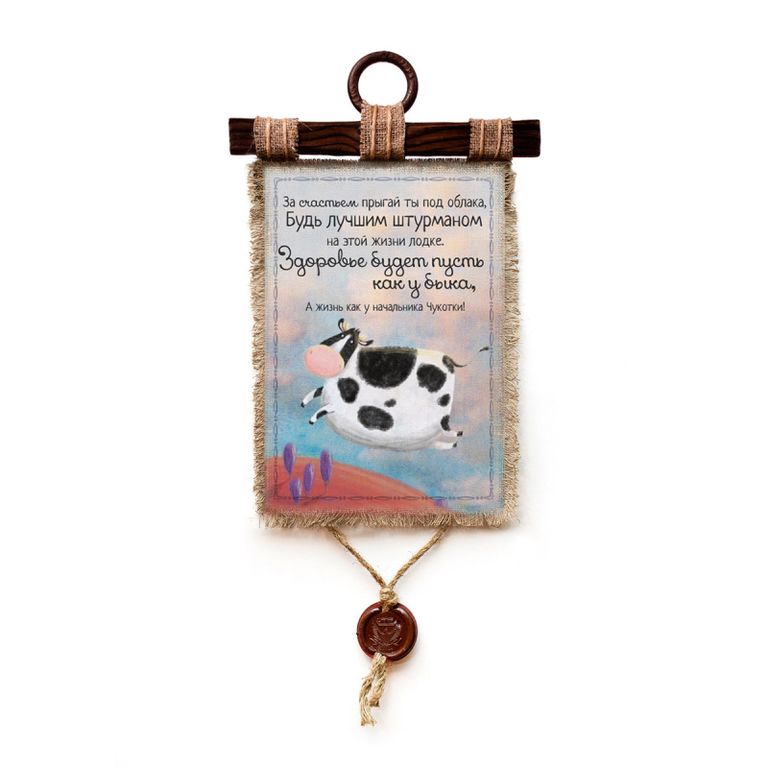 Сувенир вертикальный - это синтез креатива, оригинальности, практичности и доступности. Специальная технология нанесения на льняную ткань и бахрома по краям превращают изображение в фактурный свиток, а обожжённая деревянная рея в сочетании с тесьмой из плотной мешковины и джутовым шпагатом, преобразуют свиток в оригинальное панно. Он защищен специальным лаком от внешней среды. Долговечен, как и положено изделию под старину, но при этом его стиль не подвластен времени. Это модная новинка, которая одинаково прекрасно вписывается в интерьер загородного дома, дачного домика, бани, квартиры или офиса. Его актуальность сложно переоценить. Его мудрые цитаты, афоризмы, пожелания или шуточные высказывания ненавязчиво дополняют собой пространство, положительно влияя на его атмосферу и имидж своего обладателя. Прекрасный подарок по любому поводу и без.
