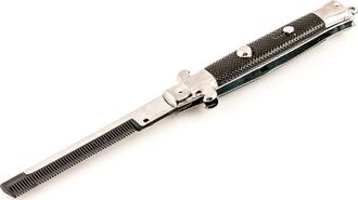 Сувенирная расчёска имеет выкидную систему, как у складного ножа, и очень удобна для хранения в сумке или кармане. Небольшой мужской сувенир пригодится и солидному джентльмену, и юному любителю приключений.