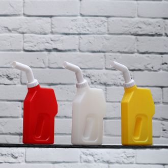 Коллекция удобных кухонных предметов для сервировки – соусников-канистр – симпатичный подарок автомобилистам, оригинальный корпоративный сувенир для работников нефтяной промышленности. Горлышко-дозатор легко снимается, позволяя заправить ёмкость кетчупом, горчицей или майонезом, соответственно цветам корпуса.