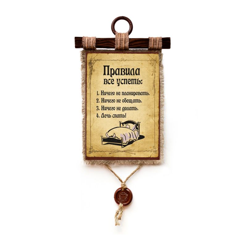 Сувенир горизонтальный - это синтез креатива, оригинальности, практичности и доступности. Специальная технология нанесения на льняную ткань и бахрома по краям превращают изображение в фактурный свиток, а обожжённая деревянная рея в сочетании с тесьмой из плотной мешковины и джутовым шпагатом, преобразуют свиток в оригинальное панно. Он защищен специальным лаком от внешней среды. Долговечен, как и положено изделию под старину, но при этом его стиль не подвластен времени. Это модная новинка, которая одинаково прекрасно вписывается в интерьер загородного дома, дачного домика, бани, квартиры или офиса. Его актуальность сложно переоценить. Его мудрые цитаты, афоризмы, пожелания или шуточные высказывания ненавязчиво дополняют собой пространство, положительно влияя на его атмосферу и имидж своего обладателя. Прекрасный подарок по любому поводу и без.