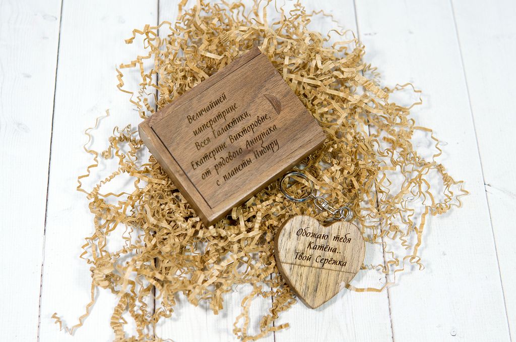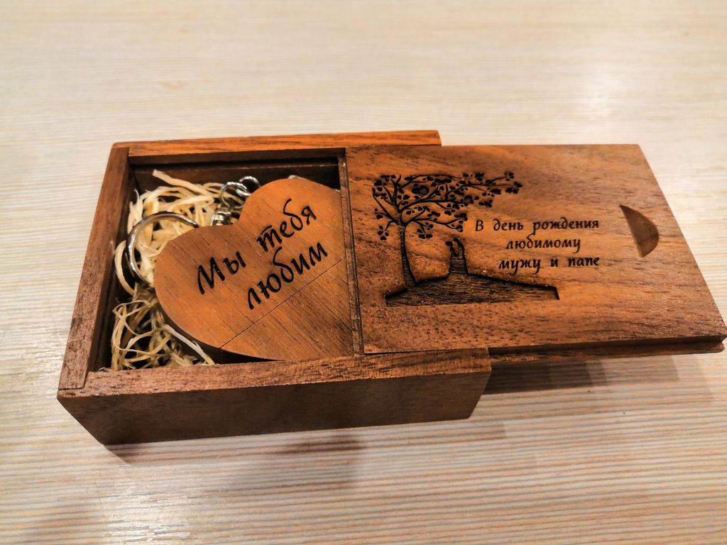 В стоимость входит гравировка на крышке коробочки (до 100 знаков), гравировка на одной стороне флешки (до 20 знаков), подготовка макета гравировки (не более двух вариантов), изменение макета по вине заказчика + 500 руб.